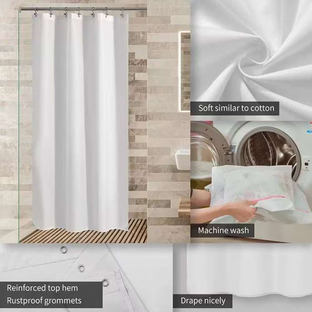 - Lightweightshower liner features a reinforced header and rust-proof metal grommet eyelets, easy to hang naturally and drapes nicely, long term use as shower liner or curtain